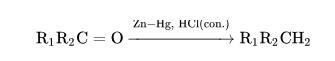鋅粒與氯化汞在稀鹽酸中反應(yīng)可以制得鋅汞齊,后者與濃鹽酸、醛或酮一起回流可將醛酮的羰基還原為亞甲基,是為克萊門森還原反應(yīng):