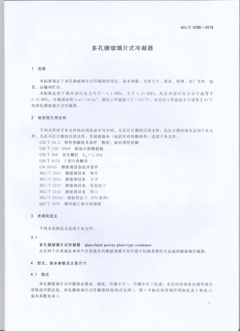 HG/T 4298-2018范圍【多孔搪玻璃片式冷凝器】