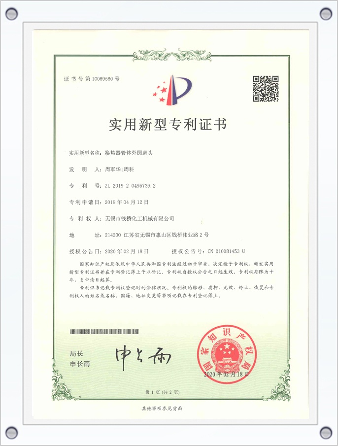 碳化硅換熱器內(nèi)測(cè)密封裝置專利證書(shū)
