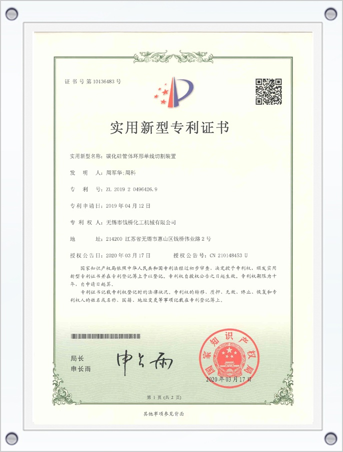 碳化硅管體環(huán)形單線切割裝置專利證書(shū)