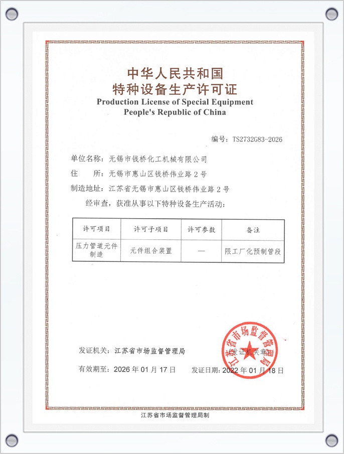 特種設(shè)備生產(chǎn)許可證(壓力容器制造)
