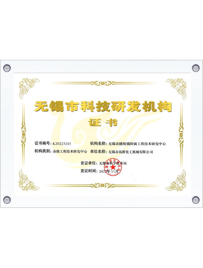 無錫市企業(yè)技術(shù)中心認(rèn)定證書