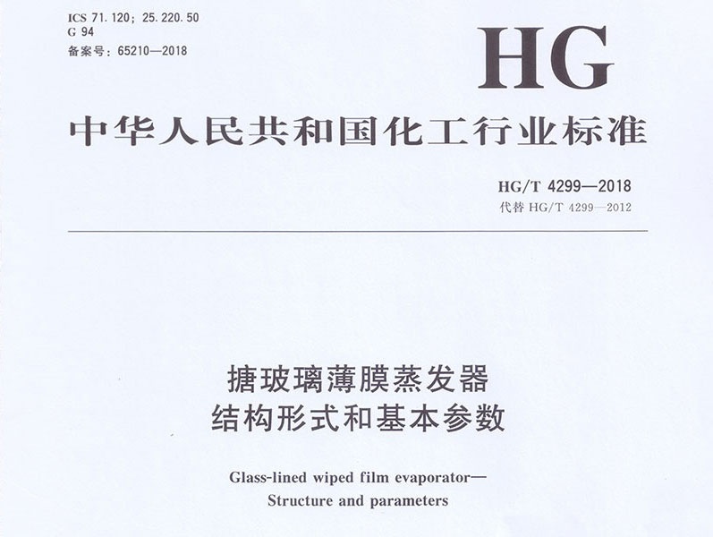 無錫錢橋化工機械有限公司參與起草中華人民共和國化工行業(yè)標(biāo)準(zhǔn)HG/T 4299-2018《搪玻璃薄膜蒸發(fā)器結(jié)構(gòu)形式和基本參數(shù)。 ...