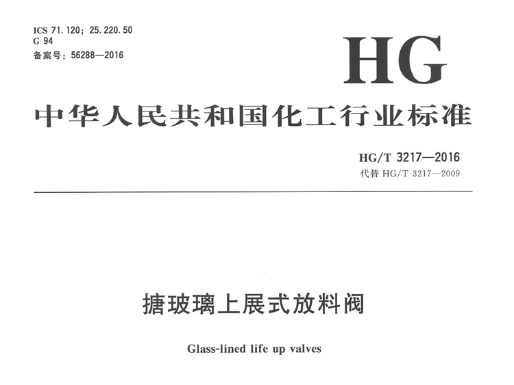 HG/T3217~3220-2016搪玻璃閥門標(biāo)準(zhǔn)