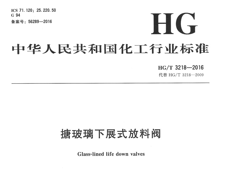 HG/T 3218-2016搪玻璃下展示放料閥標(biāo)準(zhǔn)簡介