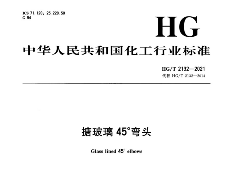 HG/T 2132-2021搪玻璃45°彎頭行業(yè)標(biāo)準(zhǔn)簡介和下載